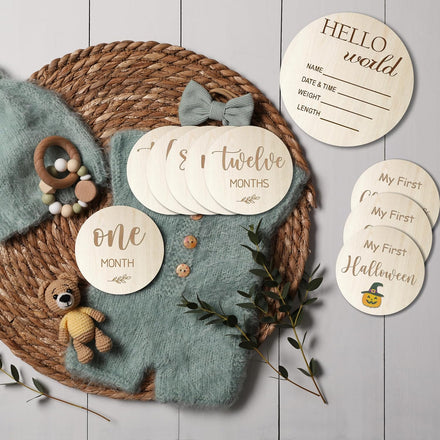 • 【Premium Natural Wood】Each disc is made from premium natural wood, featuring a smooth surface and durable structure—perfect for long-term keepsakes. The gentle wood grain adds a warm, rustic charm to every photo. Each piece carries its own natural pattern, making every milestone marker truly one of a kind.