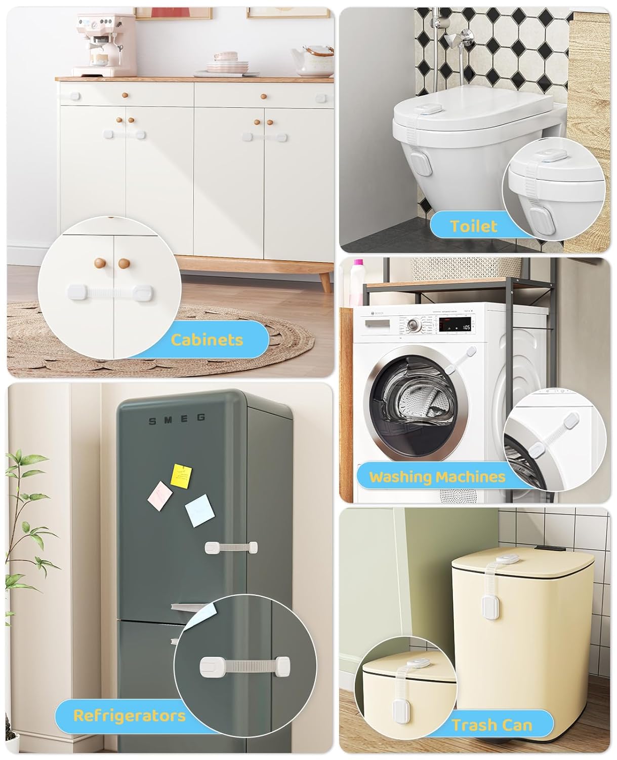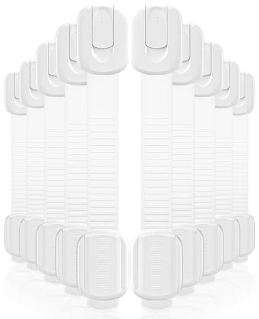 - One Lock, Multiple Uses: A pack of 10 baby proof cabinet locks—not just for kitchen cabinets, but also easily adaptable to appliances and furniture like refrigerators, toilet seats, and washing machines. Provides all-around protection against potential household hazards, creating a safe space for your baby
