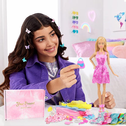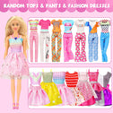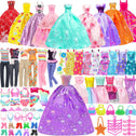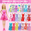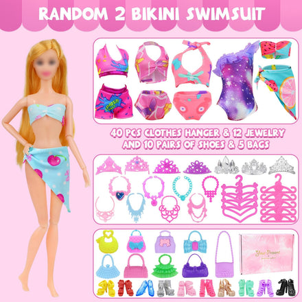 • 【With 100 Surprises in One Gift Box】Package includes 100 doll clothes and accessories- 17 dresses, 2 tops, 2 pants, 2 swimwear, 10 pairs of shoes, 12 hair accessories, 5 bags, 40 hangers (no doll)