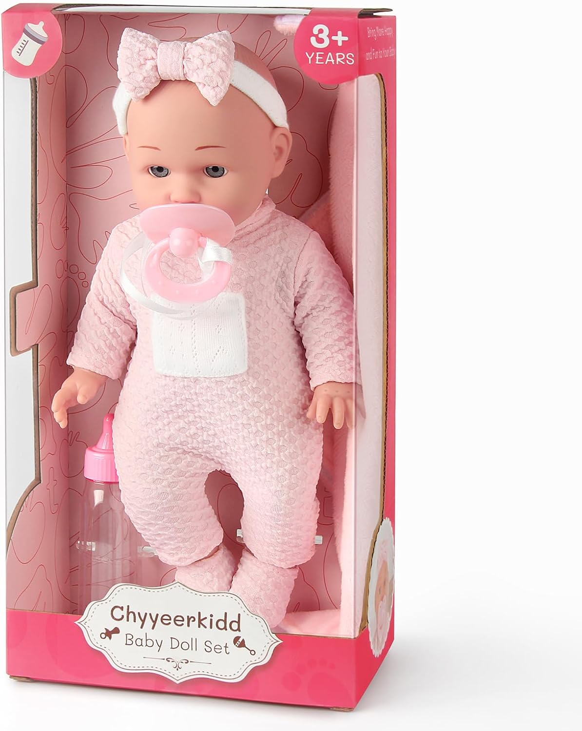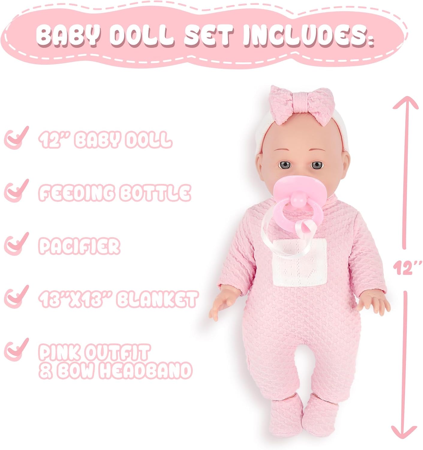 12'' Baby Doll in Gift Box - Toddler Baby Doll Set with Pacifier, Feeding Bottle, Blanket | Great Gift for 3+ Year Girls Pink