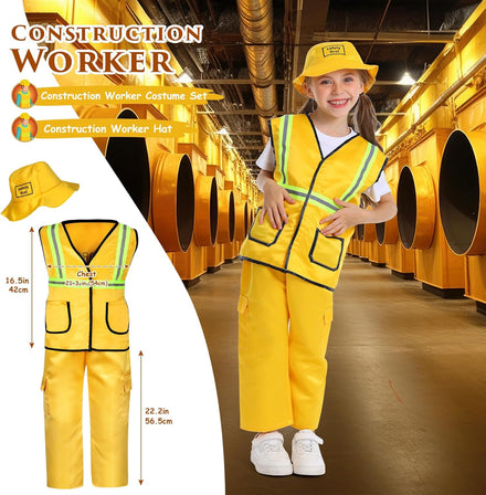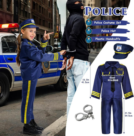 • 4-in-1 Complete Boys Dress up Costumes for Play: Spark your child's imagination with this complete 4-in-1 role play boys dress up clothes set. Includes 14 pieces: police costume for kids (police top, pants, hat, handcuffs), firefighter costume for kids (fireman top, pants, hat, toy extinguisher), kids chef costume (chef top, apron, hat, oven mitt), and Kids Construction Worker Costume (kids construction vest, pants, hard hat). Perfect for community helpers dress-up activities