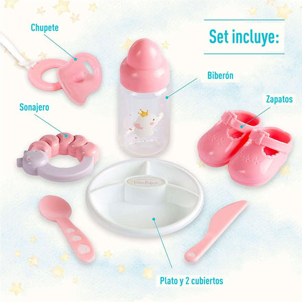 • THE PERFECT PRESENT FOR CHILDREN 2+ // Packed in a wonderful gift set box that includes a two-piece embroidered outfit, an extra outfit, a pair of adorable shoes, baby bottle, pacifier, rattle and feeding accessories