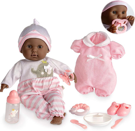 Looking for a way to introduce a child to a newborn baby? Do you know a toddler or preschooler who would love to hold, cuddle, and hug a soft baby doll? Is purchasing a high-quality baby doll from a family run and operated doll manufacturer with over 30 years experience important to you? If so, then you - and the lucky child you gift this to, will fall in love with the Berenguer Boutique Collection of play dolls! The perfect size for a toddler to carry. Many of our customers tell us how their child loves to cuddle with them just before bed. Now isn’t that sweet! The Berenguer Boutique 15-inch doll is the perfect first doll for a child to learn what it’s like to take care of others. Baby dolls offer kids a way to develop their self-help skills because children are hands-on learners. Dolls teach children how to take care of another person, add and remove clothing, interact with small objects and pointing out body parts (like eyes, ears, mouth, and nose). In addition, dolls help children learn invaluable social skills. A child’s first experience with a doll should be special, which is why we’ve created the most realistic and flawless dolls on the market. Since our origins in the 1980s, we’ve developed a reputation for being the world’s number one manufacturer of baby dolls. JC Toys is a family run and operated business with origins dating back to 1982 in south-east Spain - one of the top major toy-making and design centers in the world. Today, you can find 100s dolls, playtime accessories, and more by JC Toys. Add smiles to a young child’s face today by adding this amazing doll to your cart now.
