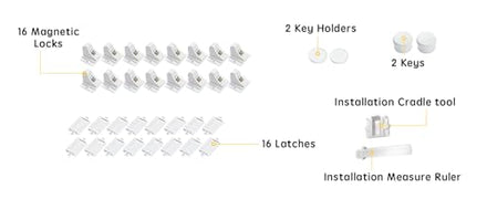 • [ 16 LOCKS + 2 KEYS ] Magnetic Cabinet Locks Child Safety Work Both for Drawers and Cabinets. Improved Locks Extra Stronger Magnetic enough to keep a house cat or toddles out. Child Proofing Locks with Magnet key control. Adhesive for Cabinets & Drawers - No Tools, No drill, No holes