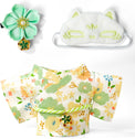 • Details & Premium Quality: The face mask, crafted from ultra-soft plush material, fits snugly along the facial contours, offering both warmth and an endearing charm. The attached flower headdress is adorned with tiny bells, and the fresh- pink/green colored kimono is printed with delicate floral patterns, paired with a detachable bell belt. When shaken, they emit a crisp, clear sound, instantly transforming the doll into a nimble little fairy