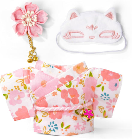 17cm Doll Clothes,Outfit Accessories Kimono Set for 6.7inch Dolls Girls, Kawaii Chic Designer Style Flower Hairbow+Pink Clothing Pajamas+Cute Halloween Mask(NO Doll)