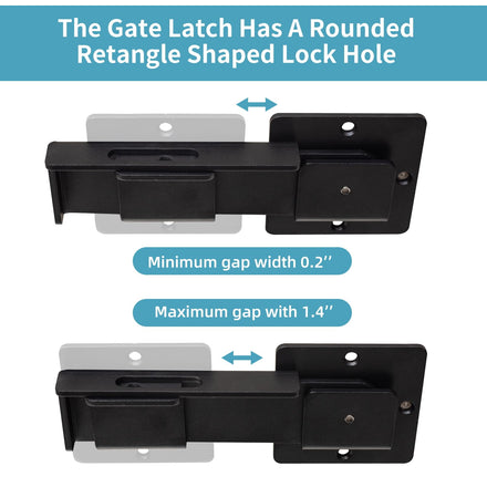 • Adjustable PadLock Hole:The door latch has an oval long lock hole, and you can adjust the lock hole and the gap between two square plates as needed, adjust the gap width between the mounting plates from 0.2'' to 1.4'' , It can support padlocks with shackles small than 0.3''.