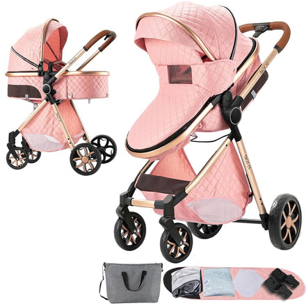 2 in 1 Baby Stroller, Convertible Bassinet Pushchair for Infants and Newborns 0-36 Months
