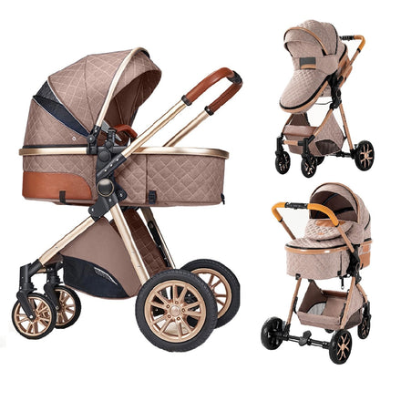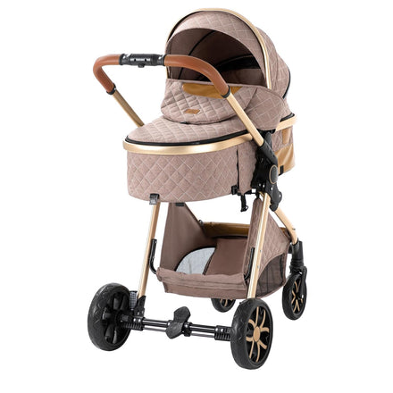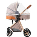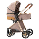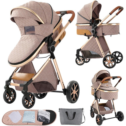 2 in 1 Baby Stroller, Convertible Bassinet Pushchair with Mommy Bag, Seat Cushion, Mosquito net, Cold Mat, Rain Cover, Foot Rest as Gifts for Infants and Newborns 0-36 Months (Khaki)
