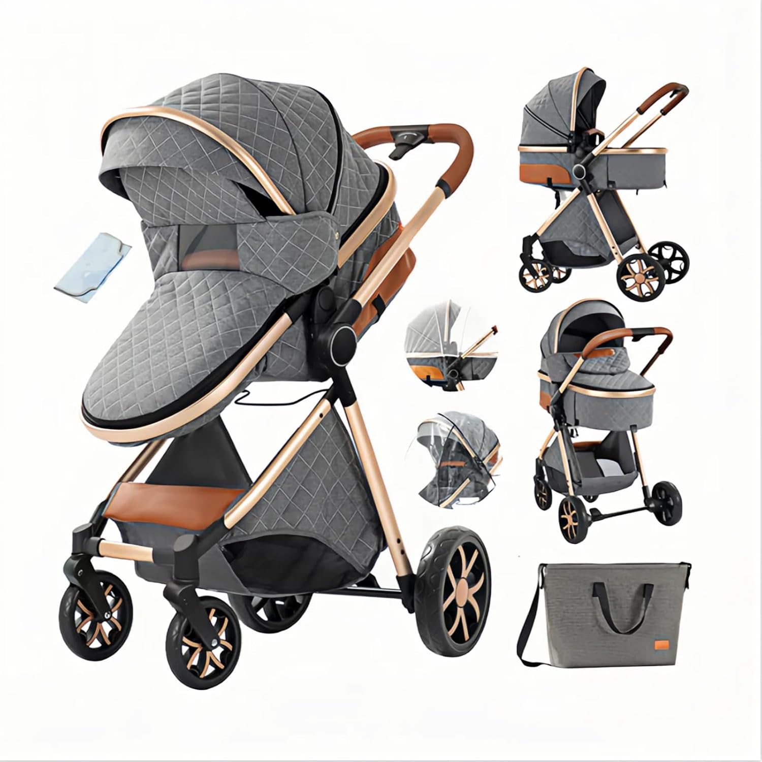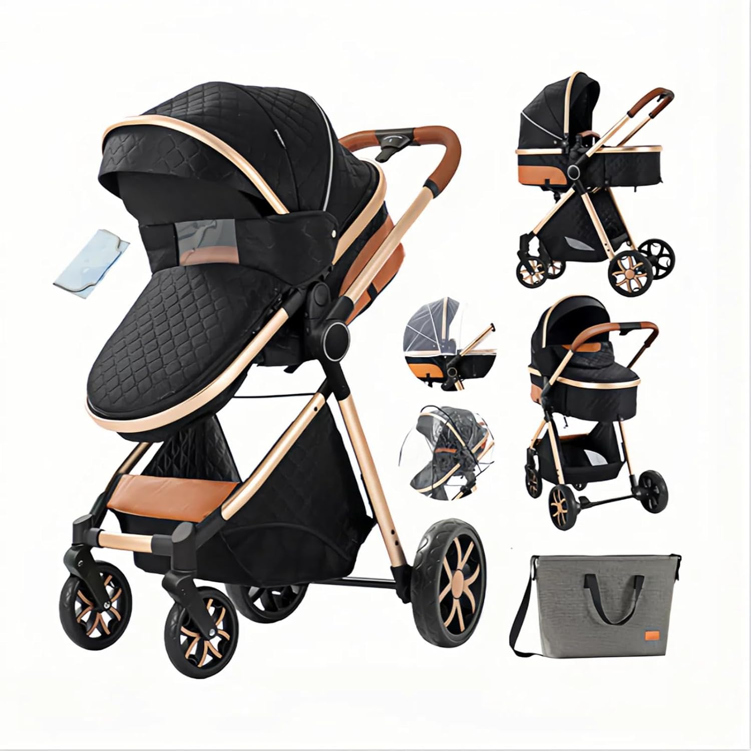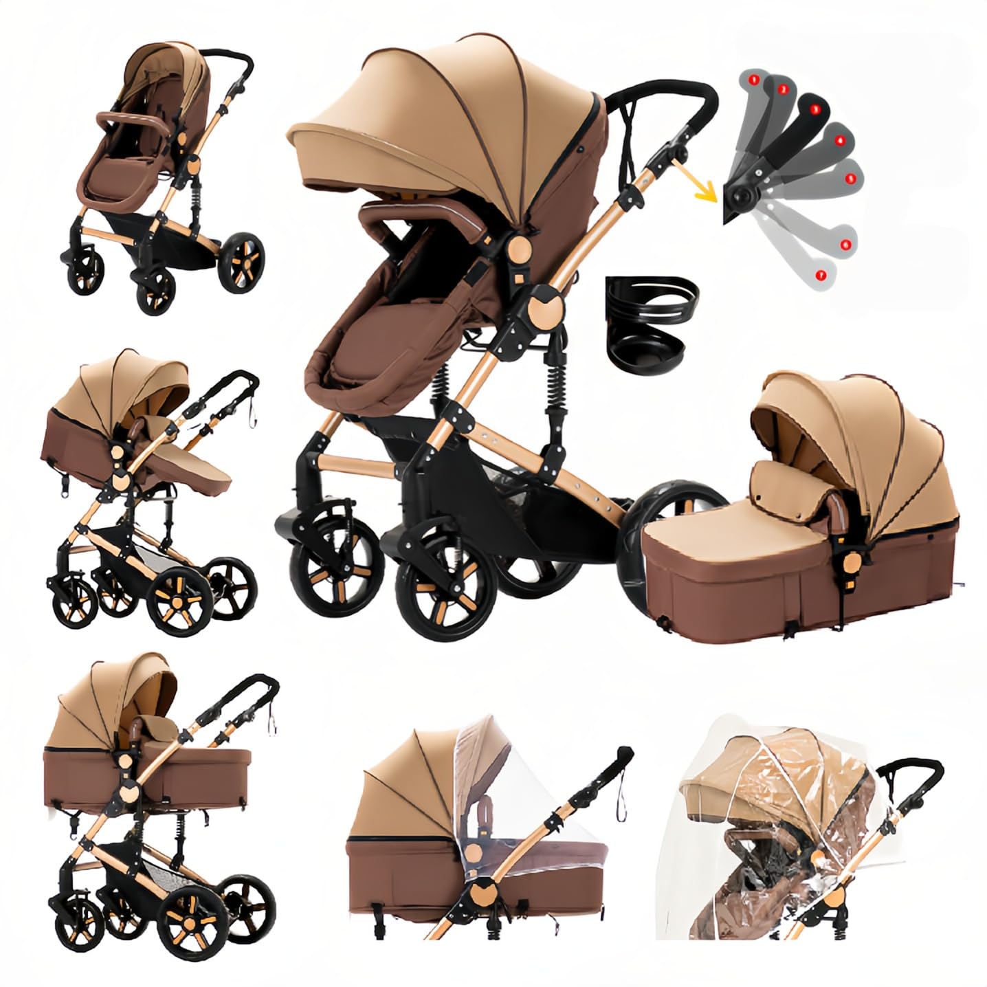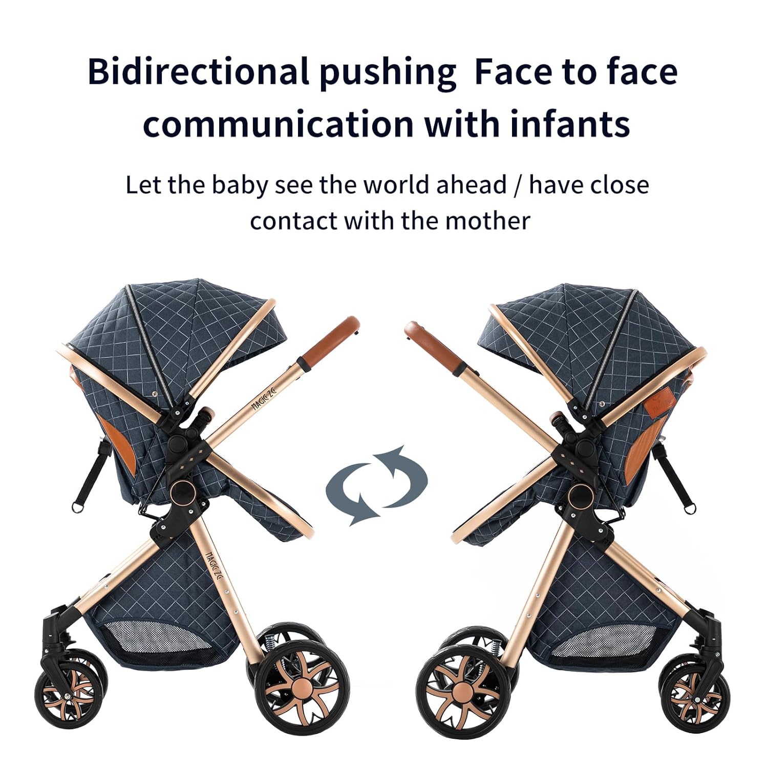 2-in-1 Baby Stroller High Landscape Pram Convertible Carriage with Reversible Bassinet for 0-36 Months,Pink
