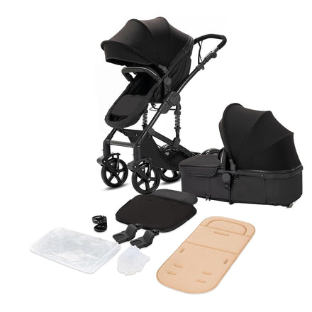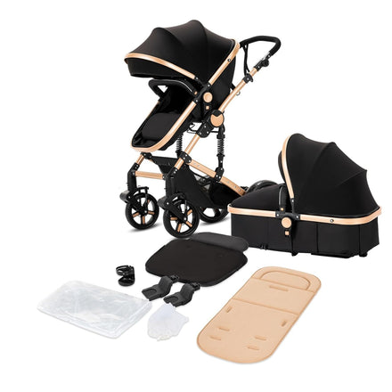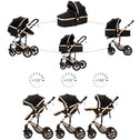 2 in 1 Baby Stroller with Bassinet, Reversible Convertible Infant Bassinet Stroller of One-Click Folding, Newborn Travel Strollers Toddler Standard Pram Carriage Lightweight (Black)