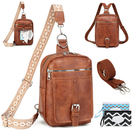 • 2-in-1 Sling Backpack: Our versatile leather crossbody bags for women trendy features a wide shoulder strap for cross or sling and a long back strap for backpack purse, allowing it to be used as a crossbody bag, backpack, sling purse, shoulder bag, belt bag, diaper bag, and travel chest bag, catering to different carrying needs. perfect for traveling or everyday use when taking the baby out! It also makes an ideal gift for birthdays, anniversaries or holidays.