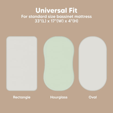 • 2-Pack Bassinet Fitted Sheets - KeaBabies Isla Bassinet Mattress Sheets, sized at 33" x 17" with a depth of up to 4", provide a universal fit for all bassinet mattress pad types. They can be used as hourglass, oval, rectangle bassinet sheets.