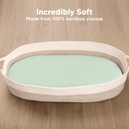 2-Pack Baby Bassinet Sheets Girl, Boy - 33x17 Viscose Derived from Bamboo Bedside Mattress Fitted Bassinet Sheets, Compatible with Halo Bassinest Swivel Sleeper, Baby Delight, Graco (Sage)