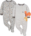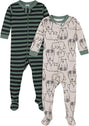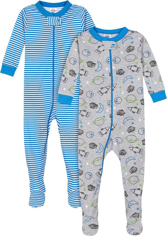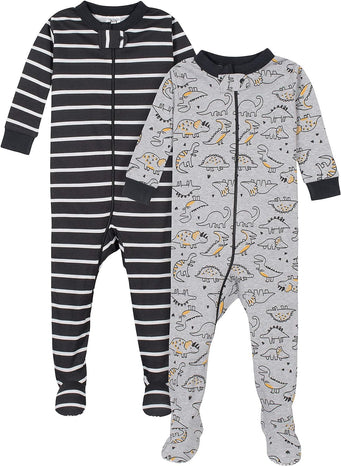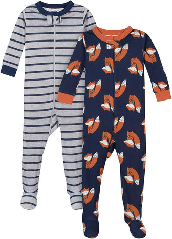 Make your bedtime routine just a little sweeter with our 2-pack snug fit footed cotton pajamas. Both pairs of baby pajamas are made with soft cotton, a comfortable and breathable fabric that’s perfect to slumber in. Our pajamas are made with a snug fit to ensure a safe night’s sleep. These baby and toddler pajamas are perfect to accommodate cool weather, as the footed legs add extra warmth to keep your little one’s toes warm the whole night through. The snug fit footed cotton pajamas feature front zippers, so changes are easier than ever. The zippers have safety tabs at the top to prevent baby from being poked. Give these PJ’s as a thoughtful and practical gift. Kids will love the fun patterns and designs and parents will love how easy they are to care for. Each piece in this set is machine washable and machine dryable. This set includes two pajamas.
