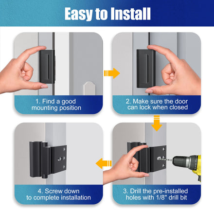 • Easy to Install: Each Door Reinforcement Lock is equipped with total 8 screws including 4 long and 4 short ones, select the appropriate screws, use an electric drill to install within 5 minutes. Easily add child locks for door. Please check the image to see if our product is suitable for your door