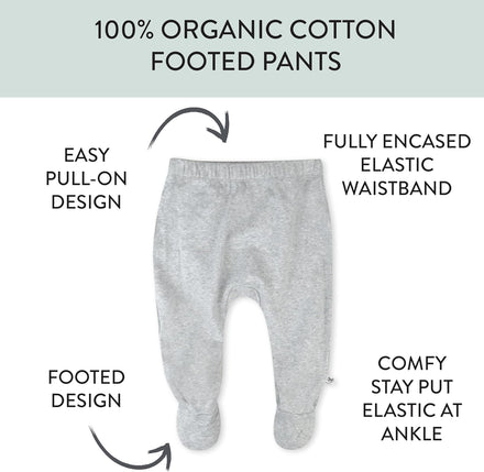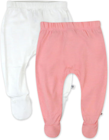 2-Pack Footed Pants Roomy Fit Pull on Bottoms 100% Organic Cotton for Infant Baby Boys, Girls, Unisex
