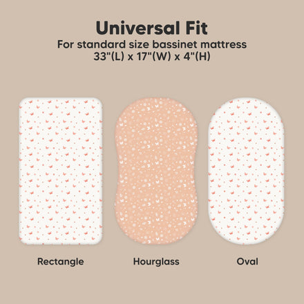 • 2-Pack Bassinet Sheets Organic Cotton – KeaBabies Soothe Bassinet Mattress Sheets, sized at 33" x 17" with a depth of up to 4", provide a universal fit for all bassinet mattress pad types. They can be used as oval and rectangle bassinet sheets.