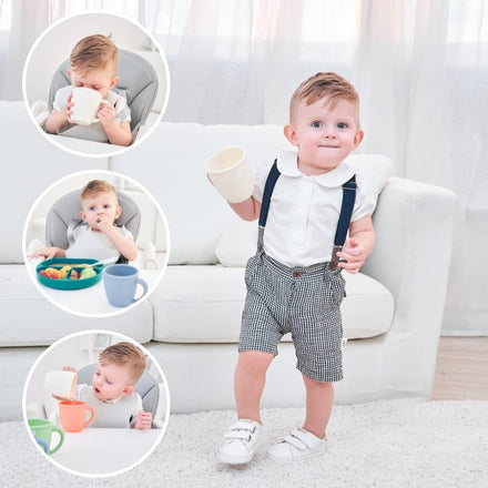 • CLEAN & EASY TO CLEAN The silicone training cup is dishwasher, microwave, oven, and freezer safe. Does not absorb flavors and odours, oil stain resistant.