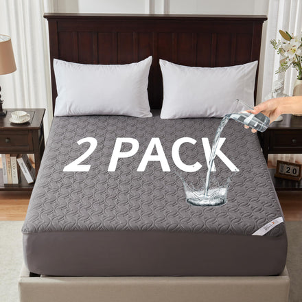 2 Pack Waterproof Mattress Protector, Queen Size Mattress Pad Noiseless with Deep Pocket 6"-18" Depth, Soft Breathable Dirt-Proof Bed Mattress Cover Washable for Home, Bedroom, Hotel (Gray)