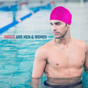 • ALSO FITS MEN AND Kids:Thicker than latex, this silicone swim cap is flexible to fit any sized head,Featuring great elasticity, this swim cap can be stretched easily for optimum fit. Since it is lightweight, you barely feel you are wearing it while swimming.