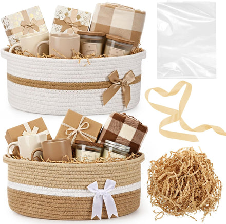 • Versatile Decorative Storage: our gift basket with handle is suitable for organizing small items, snacks, bath products, or party favors; These small woven rope gift basket double as stylish home storage bins after the event