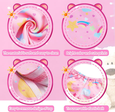 • Classic Style: this pair of pajamas clothes for bears are designed in a classic style, the printings include the moon, stars, clouds, rainbow and other symbols of quiet color elements, exquisite and adorable