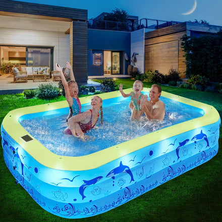 2025 Upgrade Inflatable Pools with Lights, Family Inflatable Swimming Pools for Kids,Adults, Blow Up Pool Solar Powered, Large Kiddie Pool, Durable Thickened Inflatable Family Pool for Backyard-Blue