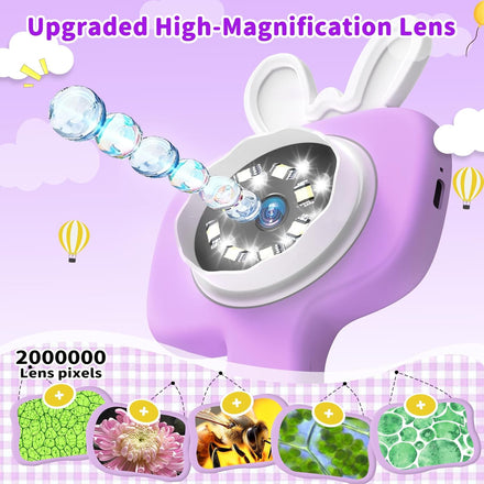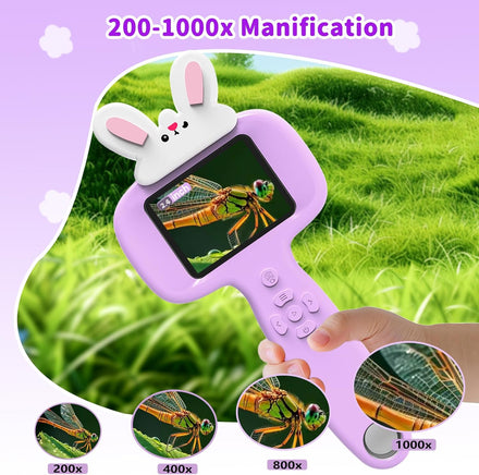 • 【1000X Magnification & Rechargeable】Featuring 1000X magnification and a 7X zoom dial, this microscope for kids allows girls and boys aged 4–6 to explore a fascinating micro world—from delicate leaf veins and insect wings to coin textures and more. The built-in rechargeable battery provides up to 2.5 hours of continuous use on a full charge. Charging cable included