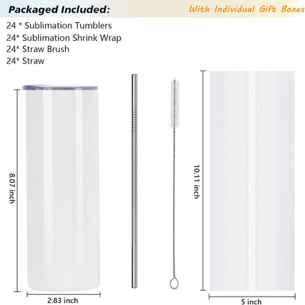• GREAT DIY GIFT: The straight tumblers sublimation set includes 24 tumbler for sublimation, 24 straws, 24 straw brushes and 24 shrink wrap. You can diy a great gift for your family, friends, besties, sisters, coworkers.