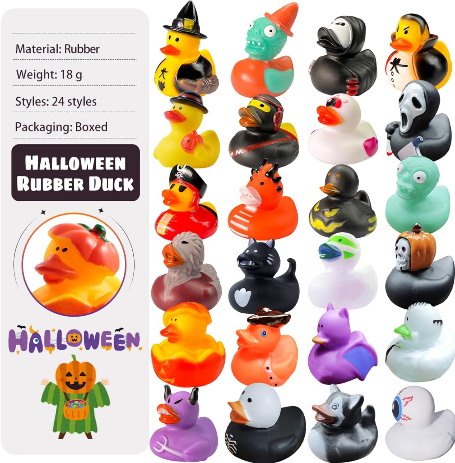 • Quality Safety: Made of high-quality material, non-toxic rubber. our Halloween duckies are safe and no odd smell. Each toy meets US toy standard and has passed ASTM and CPC testing. It's smooth and soft surface allow kids to play casually