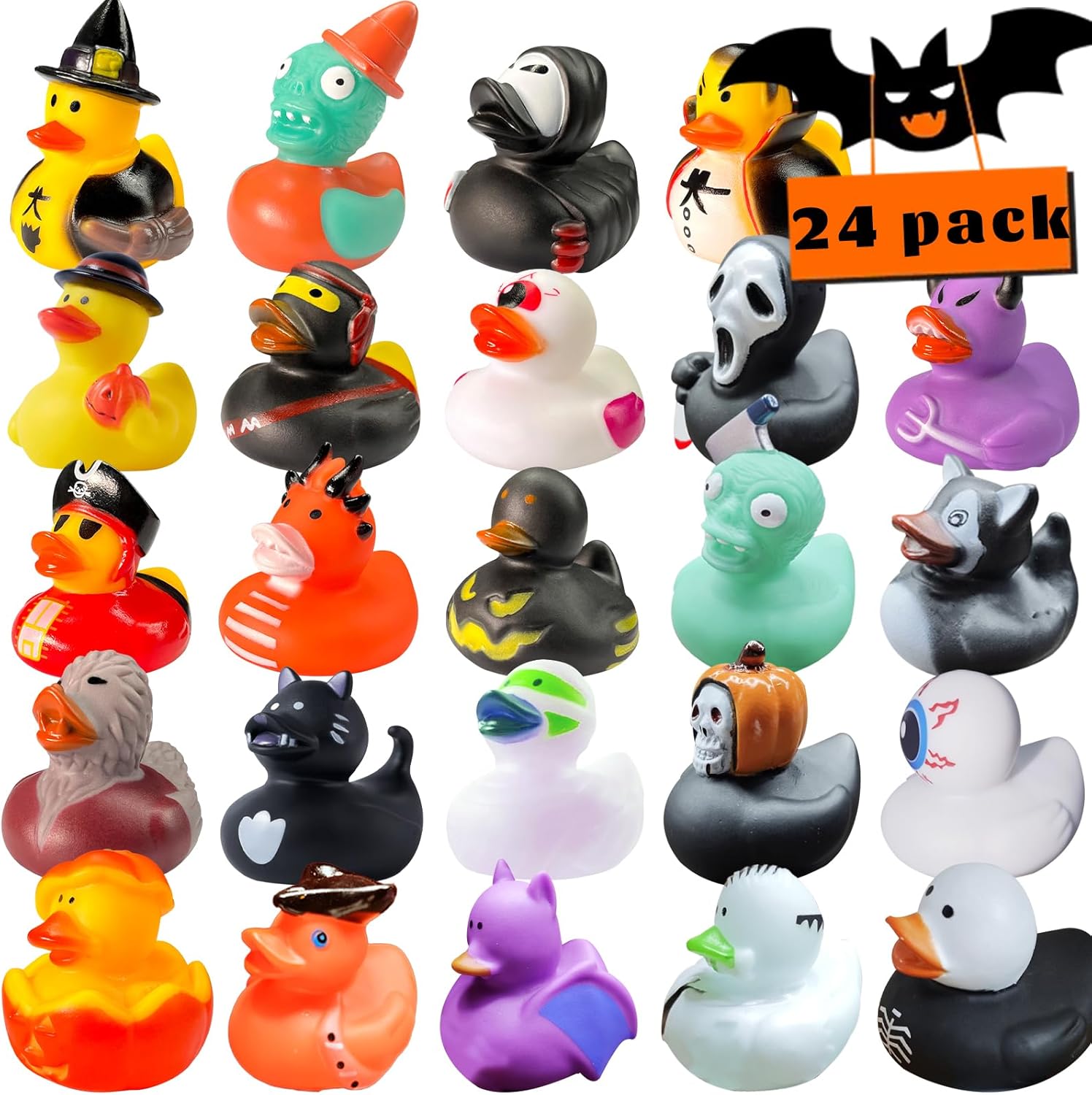 24 PCS Halloween Rubber Ducks, Halloween Ducks for Halloween Goodie Bag Fillers, Rubber Duckies Baby Bath Toys for Halloween Party Favors Decorations, School Classroom Game Prizes