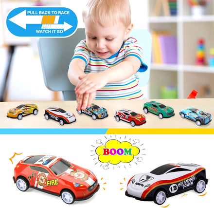 • Easy to Play- Pull back the car, no battery required, just pull back the car's tires and the car will move. Children can also play easily and have fun. The metal body bottom of the car is made of high-quality ABS plastic,, safe reliable, bright and colorful, with smooth and round edges.