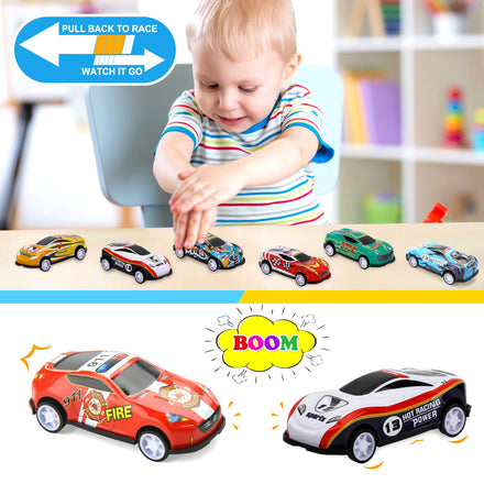 • Easy to Play- Pull back the car, no battery required, just pull back the car's tires and the car will move. Children can also play easily and have fun. The metal body bottom of the car is made of high-quality ABS plastic,, safe reliable, bright and colorful, with smooth and round edges.