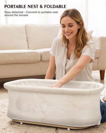 • 【Versatility Baby Bassinet】3 IN 1 Bassinet bedside sleeper can be used as an independent crib, baby rocking bassinet, or portable crib to meet the diverse needs of the home. The single bed mode can be easily removed from the base enhancing the diversity of usage scenarios.The baby bassinet conveniently locks into its stand and provides the firm, flat sleep surface baby needs