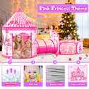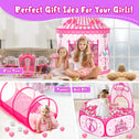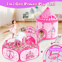 3 in 1 Girls Princess Play Tent for Kids: Pop Up Toddlers Playhouse with Baby Crawl Tunnel, Ball Pit and Castle Tent - Pink Children Play Tent Toys Indoor and Outdoor Game for Birthday Gift