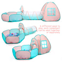 • 3 in 1 Design: The adventure play tent and tunnel set includes one Play tent house with mesh window,one Ball Pit, and a long Play tunnel. Each component can be used together or separately easily. The play tent and ball pit set feature mesh 'windows' provide ventilation and peek-a-boo opportunities, two small holes on the square tent and long tunnel to provide lots of play opportunities.