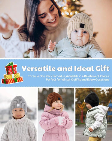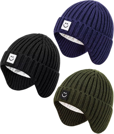 Cozy and Adorable Baby and Toddler Kids Beanie Hat Set - Perfect Winter Accessories for Your Little Ones Product Features: Comfortable and Warm: Feature a soft and skin-friendly interior lining, providing ultimate comfort and warmth for your little ones. Windproof and Ear Protection Design: With a thoughtful windproof and ear-covering design, keeping ears protected from the cold weather. Two Sizes for Both Boys and Girls: Come in two sizes with great elasticity, ensuring a great fit for both baby boys and baby girls. Simple Design with Cute Smile: Adorned with a charming smile emblem, adding a fun twist to the hat's overall simplicity. Value Pack with Multiple Colors: 3 pack hats in various colors, offering great value for money and easy match with different outfits. Versatile Usage: Perfect for various daily occasions, such as playing in the snow or going for a walk. Ideal Gift Choice: Whether it's Christmas or birthdays, it makes a wonderful gift choice for your loved ones.