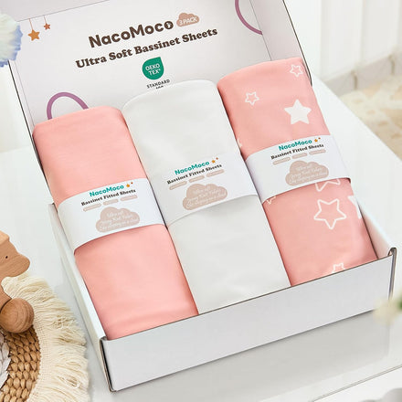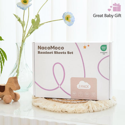 • STYLISH BABY GIFT - NacoMoco bassinet sheet sets come in a gift box with non-compressed packaging, it makes a thoughtful and practical gift for new parents. You can buy with confidence as we will provide you with a reliable service guarantee