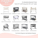 • FLEXIBLE FIT - These rectangle bassinet sheets measure 33x20 inches and made specifically for most regular-sized bedside sleeper such as Baby Delight Beside Me Dreamer, Dream On Me Skylar, Maxi-Cosi Iora, Angelbliss 3 in 1 baby bassinet, KoolerThings/Fodoss/Jimglo/BabyBond/YADAQE baby bassinets bedside sleeper. With an elastic band around the bottom edge of each sheet to ensure a snug fit, these bassinet mattress sheets are flexible fit pads from 18" to 21" wide and 31" to 34" long