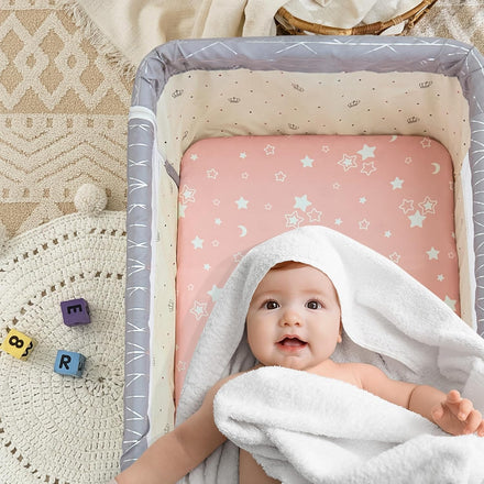 • DESIGNED FOR LOVE - Our 3 pack bedside bassinet sheet set includes two solid color and one cute pattern, they will decorate the bassinet and provide you and your baby a good mood every day, designed specifically for baby girls