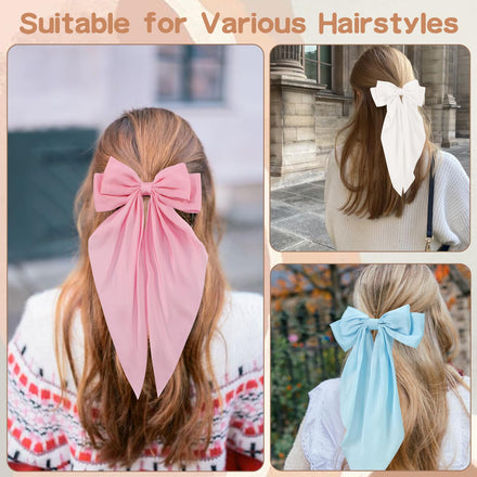 • 🎀SOFT MATERIAL🎀: These big hair bows clips are carefully crafted from satin material and metal clips, which is silky soft and very textured to touch. Wearing them will not only add to your elegance and charm and make your hair look fuller and fluffier, but you will also feel so comfortable while wearing them that you can barely feel the bow hair clips!