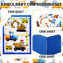 3 Piece Baby Boy Crib Bedding Set Construction Theme Baby Comforter Set for Crib Nursery Bed Set Decor with Fitted Crib Sheet, Comforter and Skirt for Baby Boy Girl