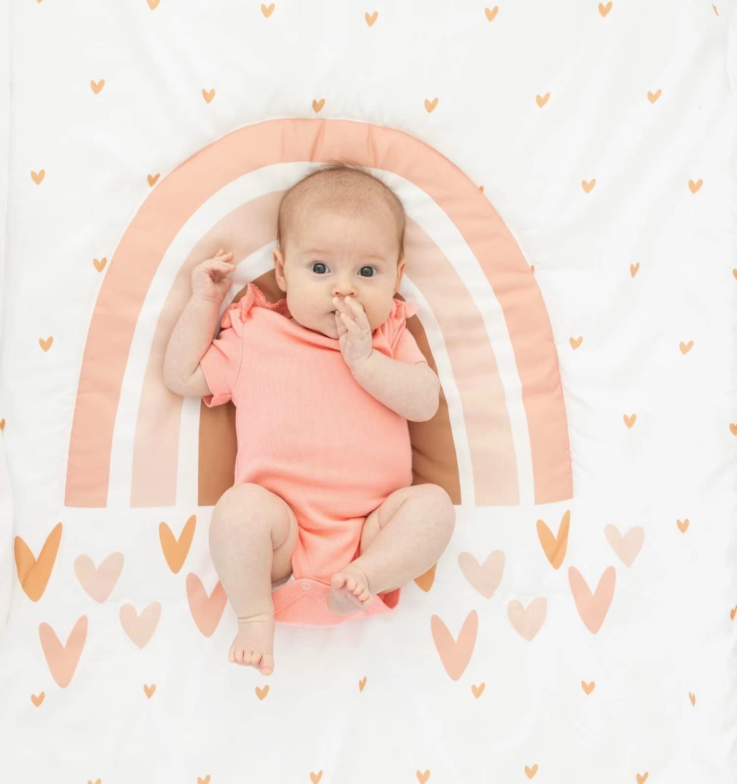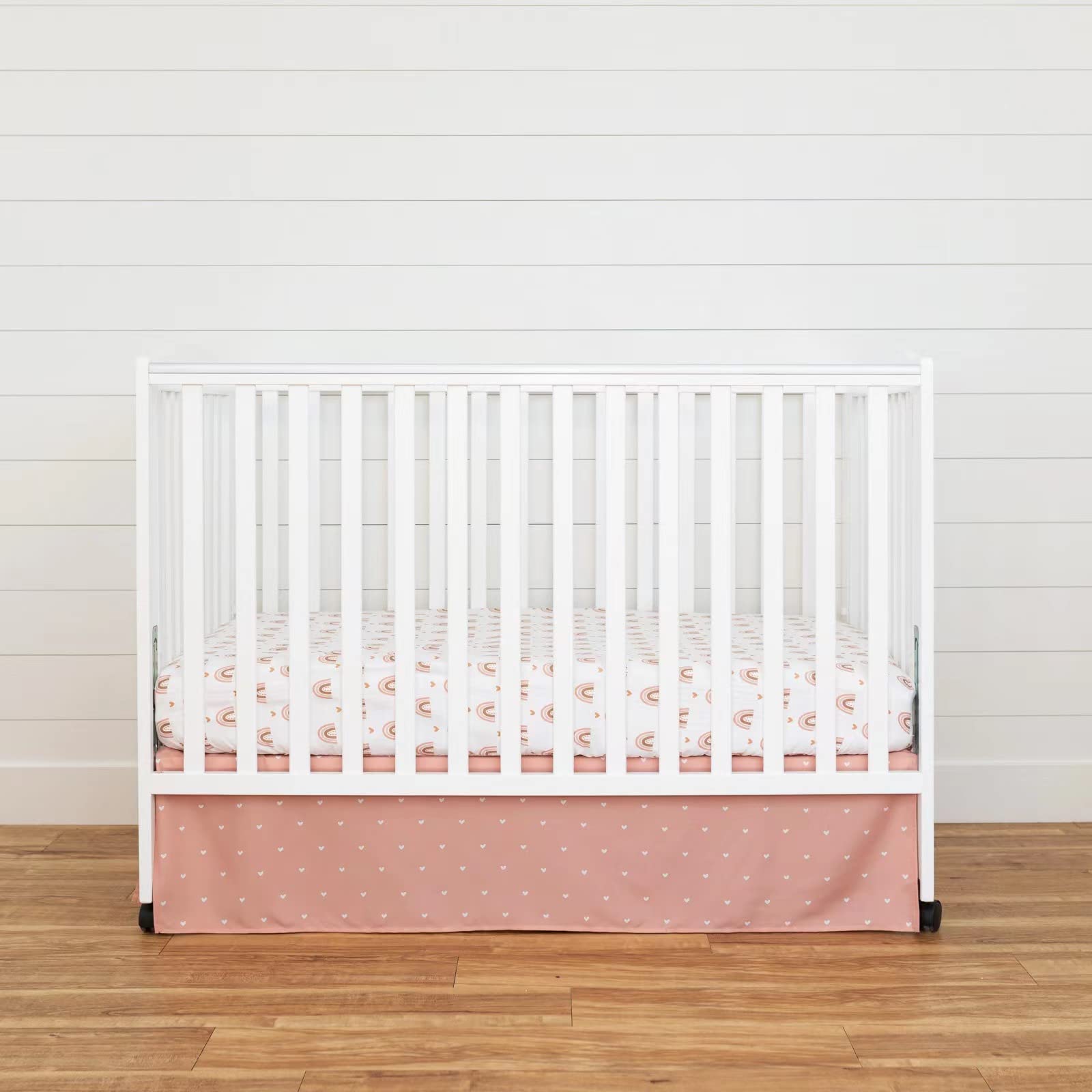 • ๐ŸŒˆBoho Nursery Bedding: Bring your little one home to a cheerful nursery space with our Boho Collection, featuring dusty rose and peach pink rainbows and coral hand-painted hearts. Boasting with everything boho themed, what more could you want in your baby boho crib bedding?!