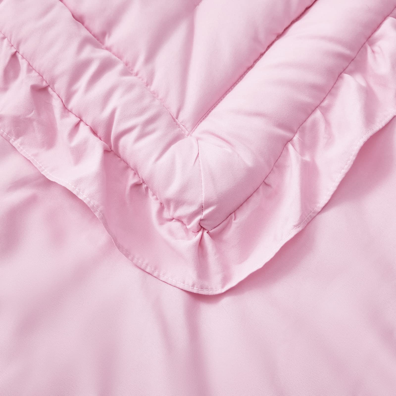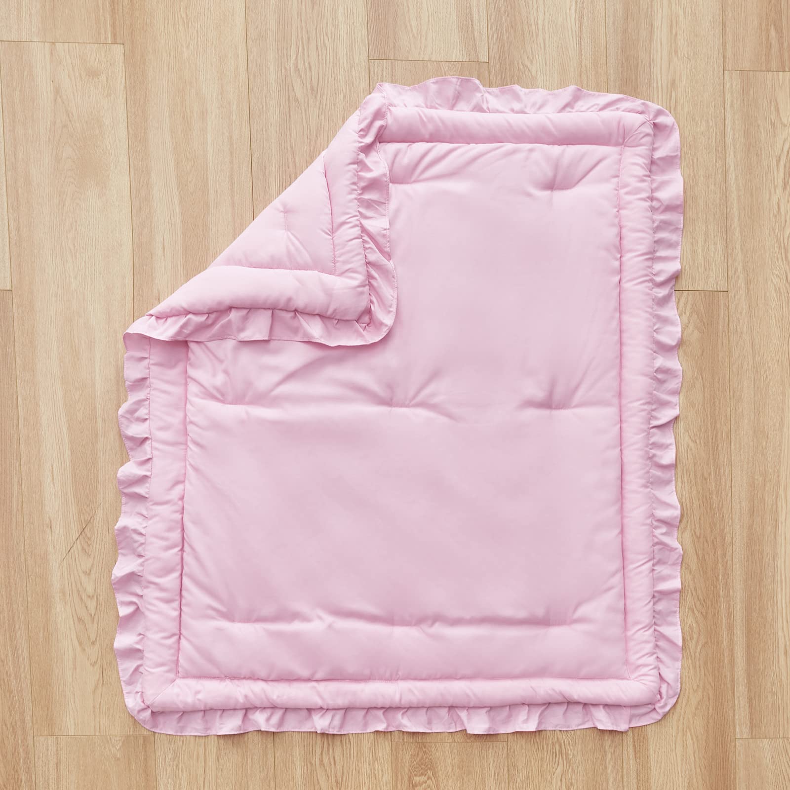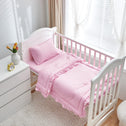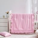 3 Pieces Crib Bedding Set Baby Ruffle Quilted Comforter with Fitted Sheet and Pillowcase - Cute Ruffled Shabby Chic Bedding Soft Blanket Design Pink
