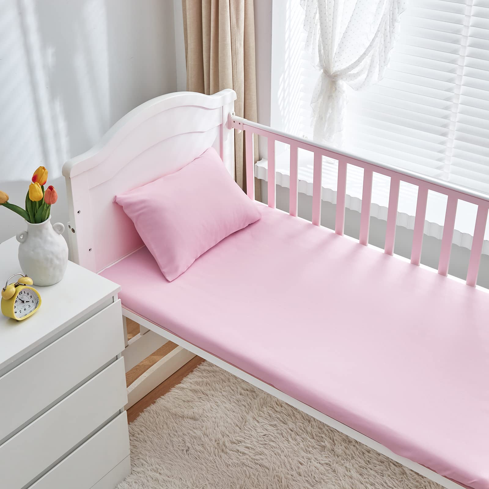 • [ Material ]: Made in eco-friendly polyester and made by our 100% Oeko-Tex Certified Factory. Offer your kids best quality. Our comforter is made with 100% 90GSM microfiber outer fabric and ultra soft 320GSM microfiber inner fill. Soft Durable, breathable and machine washable. Help your Baby get warm very easy in cold weather. The sheet, pillowcase and the ruffle are made on 90GSM fabric (same with the comforter)