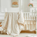 • Unique Design: Simple and sophisticated jacquard tufted embroidery design brings the visual enjoyment of beauty. The comforter not only has decorative tufts, but also has a ruffled fringe design on the edge, which will make the baby's room more unique and beautiful. The minimalist solid colored Bohemian style is perfect for baby boys and girls.