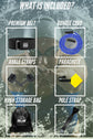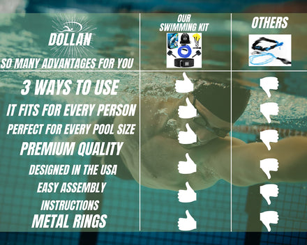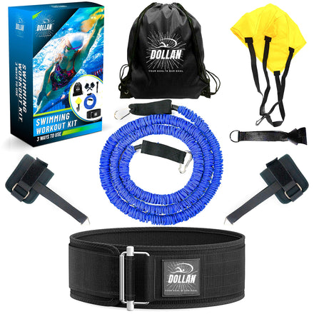• Our swimming tether trainer kit includes, bungee rope, waist teather training, static strap , storage bag. These are often sold in lower quality by our competitors and as extras at higher costs, but we include them at one stop custom bundle