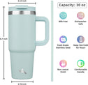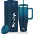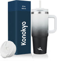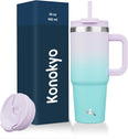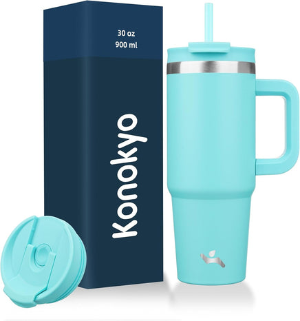 Konokyo 30oz Tumbler with Handle and Straw,Insulated Water Bottle Stainless Steel Travel Coffee Mug,Blue Haze
