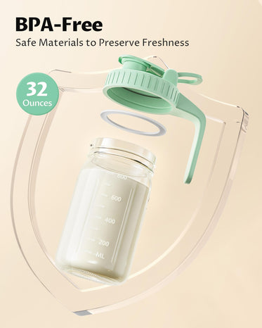 • 32oz Capacity for Breastmilk & Formula Storage: Our Mason jar pitcher holds up to 32oz, making it perfect for storing breastmilk, formula, or milk. Its generous capacity is ideal for daily storage and feeding